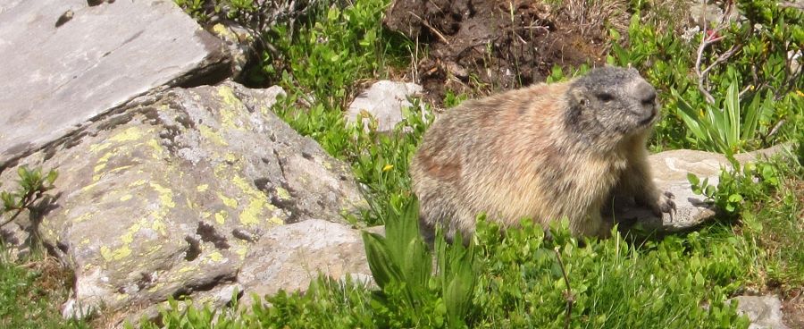 © Carina SchmidDie Murmeltiere haben es fein, denn Anfang November bis Anfang April halten sie ihren Winterschlaf. Im Mai beginnt für die kleinen Nager dann die Paarungszeit und die Manggä-Babys (auch Äffchen genannt) werden dann bereits nach fünf Wochen geboren. Gleich ab der Geburt beginnt für die Kleinen dann das große Fressen, denn sie brauchen genügend Fettreserven, um die kalten Wintermonate gut zu überstehen. Ein ausgewachsenes Tier frisst deshalb am Tag ca. 1,5 kg Grünzeug. Während die weiblichen Murmeltiere (auch Katzen genannt) auf die Jungen aufpassen, halten die männlichen Manggä (auch Bären genannt) Wache, um das Rundel vor Gefahren zu beschützen. Die schlauen Bergbewohner warnen sich nämlich gegenseitig mit einem lauten Signalpfiff vor Feinden wie Marder, Falke, Adler oder Fuchs.