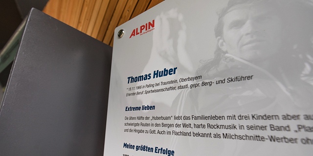 Die erste dieser sieben Stationen beschäftigt sich mit den berühmten Huber Buam und ihren Kletterabenteuern am Wilden Kaiser. Persönliche Eindrücke und ein Chalk-Bag schaffen eine Verbindung. An anderer Stelle im Tal werden wir später den restlichen Stationen begegnen, mit Anekdoten, Bildern und Gegenständen von bekannten Alpinisten: