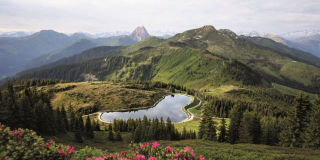 Anfang Juli beginnt die Alpenrosenblüte – oder wie wir im Dialekt sagen die „Almrosen“! Dann erstreckt sich ein Meer von wunderschönen selten gesehen Blumen, ganze Hänge erblühen. Ein Meer von rosarot, rot, pink… so ganz kann ich die Farbe nicht zuschreiben. Das muss man einmal gesehen haben. Hier kann ich nur empfehlen, sich hinzusetzen und den Anblick der Alpenrosen sowie den Ausblick zu genießen.