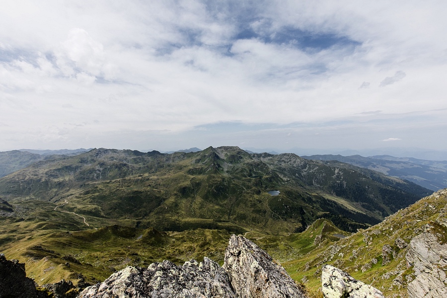 © Sportalpen GmbHZusammen mit dem Fotografen Fabian breche ich also auf und mache Panoramajagd. Der Aufstieg vom Kröndlhorn erfolgt von der Rotwandalm und führt über einen etwa zweieinhalb Stunden dauernden Wanderweg. Schon der Pfad nach oben bietet – inklusive einer erfrischenden Zwischenstation am Reinkarsee – zahlreiche Gelegenheiten, die Linse auszupacken: von der einsamen Schutzhütte über die schroffen Felsformationen bis zum farbenfrohen Wechselspiel der Natur. Das große Highlight wartet allerdings am Gipfel des Kröndlhorns. Am Gipfel angekommen, offenbart sich Wanderern ein einzigartiges 360°-Panorama.