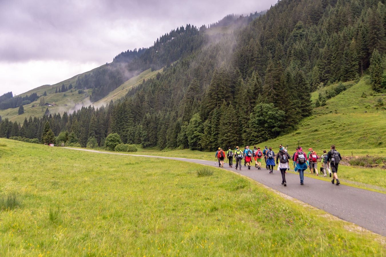 Eine wohl bekannte Melodie riss mich aus dem Schlaf. Ich schaute auf mein Handy und es war der 07.07.2018, 04:45 Uhr. Eigentlich zu früh für einen Samstagmorgen, jedoch hatten wir uns heute etwas ganz Spezielles vorgenommen. "Speascht" hieß unser heutiges Unterfangen - eine Speed-Hiking-Veranstaltung mit Aussichten auf atemberaubende Gipfel rund ums Spertental in Kirchberg in Tirol. Wirklich vorbereitet hatte ich mich nicht, es fehlte einfach die Zeit. Einige Bergtouren an den Sonntagen, aber niemals weitere Distanzen, oder überdurchschnittlich viele Höhenmeter. Beim Frühstücken öffnete ich Facebook um mir den Start der Speascht – Extreme Distance anzusehen. Um Mitternacht ging es für alle, die sich für die lange Variante von 68 km und 4500 Höhenmeter entschieden hatten, los. Meine Gedanken kreisten bei den Teilnehmern, denn es hatte in der Nacht geregnet und ein zäher Nebel verbarg die Berggipfel. Mit der Hoffnung, dass wir es bei der „Light Distance“ etwas besser erwischen würden, machte ich mich fertig. Ich musste mich etwas beeilen, denn um 05:30 Uhr wollte ich mich mit meinem Teamkollegen in Kirchberg treffen. Am Treffpunkt angekommen erblickte ich ein paar bekannte Gesichter, die sich auch für den Start um 06:00 Uhr beim Cafe Hochland in Aschau bereit machten. Gemeinsam mit meinem Teamkollegen Hannes stellten wir uns mit dem herrlichen Teamnamen „Hons und Sepp hoaßt jeder Depp“ dieser Herausforderung. Uns standen etwas mehr als 35 km und 2500 Höhenmeter bevor. Wie die anderen waren auch wir sehr motiviert und so konnte uns der Nebel und das grau in grau nichts ausmachen. Immerhin hatte es beim Start nicht geregnet.