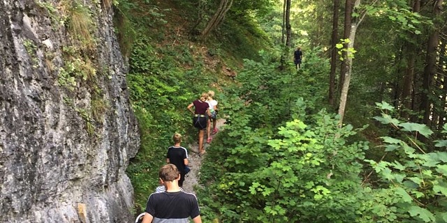 Begin augustus 2018 reden een studievriend en ik met twee auto's vol kinderen naar het Pillerseetal. Eerst naar Fieberbrunn om bij de sportwinkel en skischool Widmann de klimgordels met dubbele karabiners om te zekeren te huren. Je kent die dingen wel van de outdoor klimparken in boomtoppen zoals in het Amsterdamse bos. Daar heb je altijd uitgebreide instructie en is er permanente surveillance zoals in een zwembad met badmeester. Klettersteig kun je natuurlijk met een berggids doen.... maar het hoeft niet.